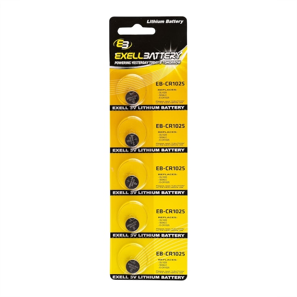 5pack Exell EB-CR1025 3V Lithium Coin Cell Battery Replaces DL1025