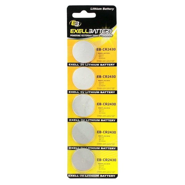 5pack Exell EB-CR2430 3V Lithium Coin Cell Battery Replaces DL2430