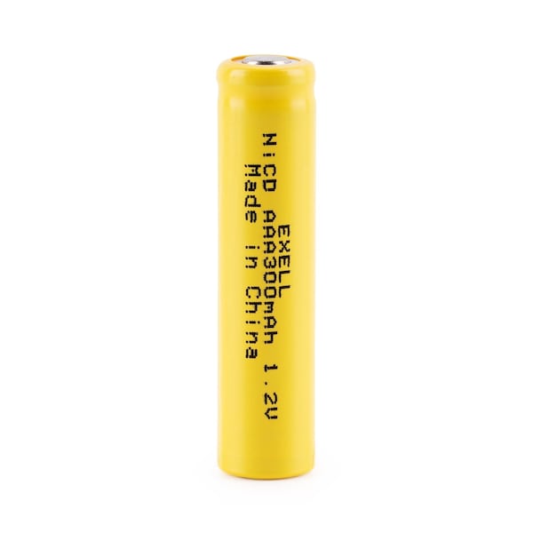 Exell AAA 1.2V 300mAh NiCD Rechargeable Flat Top Battery Consumer Applications: Widely used in radio controlled devices, electric tools and toys, electric mopeds, meters, two radios, hybrid automobiles, electric razors, toothbrushes, cameras, camcorders, mobile phones, pagers, instruments/equipment, high power static applications Telecoms, UPS and Smart grid, and numerous other applications. Exell AAA 1.2V 300mAh NiCD Rechargeable Flat Top Battery Specifications Voltage: 1.2V Amperage: 300mAh Chemistry: Nickel Cadium NiCD Height: 1.66in Diameter: 0.40in Terminal Types: Flat Top NiCD Assembly Cell Battery Information Excellent quality and provide constant power electric current for your power hungry devices and some solar lights and solar applications. Low internal resistance, ideal for rapid high current discharge Excellent battery cycle life: 1000 times Ni-Cad battery can be charged and discharged for up to 1000 times Environmentally Friendly Ni-Cad can be recycled If use once a day, Ni-Cad batteries can last up to 3 years. It is a good practice to do deep-discharge or complete discharge at least once 4 to 8 weeks. Deep discharge complete discharge is important for Ni-Cad not to develop memory effects. Compared with other types of rechargeable cells, Ni-Cad batteries offer good cycle life and performance at low temperatures with a fair capacity but its significant advantage is the ability to deliver practically its full rated capacity at high discharge rates discharging in one hour or less
