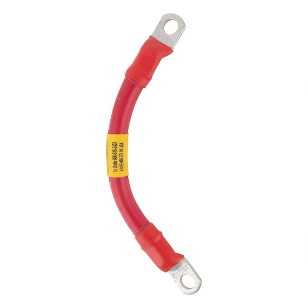 AWG #1/0 Red Battery Interconnect Cable - 6 InchesVery high current flows in the cables that connect an inverter to the batteries, even in a Low-Voltage power system. Household appliances can draw over 100 amps, and motors may draw up to 500 amps. These cables allow the inverter to draw the current needed to support a large load.Use these cables between individual battery cells or between battery banks. Use 1/0 cables for inverters that produce 12 volts and 3000 watts or smaller. Circuits with a higher load than this should use 2/0 or 4/0 cables. Cables are marked in red heat-shrink tubing for positive and white on black heat-shrink for negative.Features of the 6" CablePlated Copper Lugs: These UL-listed lugs are made from tin-plated copper tubing with 3/8" holes, soldered or crimped to a stranded cable.Heat-Shrink Tubing: This tubing insulates the copper lugs and compression terminals. Tubing shrinks and glue inside melts when heated, sealing wires against corrosion and moisture.UL-Listed Battery Cable: This fine-stranded, very flexible cable is UL-listed for use as battery cable. It is rated MTW/THW/AWM, sunlight resistant, direct burial, 105 degrees C. Available in red or black.SpecificationsBrand: BIAFColor: RedLength: 6"