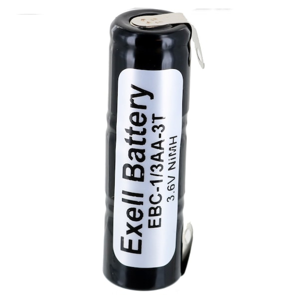 Exell 3.6V Custom NiMH 300mAh Stick Battery w/ Tabs for Communication Equipment, Lighting, Power Tools and more. 3.6V Custom NiMH 300mAh Stick Battery w/ Tabs is an excellent custom battery pack. If you are a novice or an old pro, these batteries will keep you powered up. High Quality High Capacity NiMH batteries, provide long use time with this high 800mAh capacity. Designed for enhanced performance for high drain applications such as Emergency lights, solar lights, searchlights, remote control car, remote control boats, aircraft, model aircraft, hobby packs, electric shavers, razors, massagers, electric toothbrush. Exell 3.6V Custom NiMH 300mAh Stick Battery Specifications Voltage:3.6V Amperage:300mAh Chemistry:NiMH Cell Count:3 x 1/3AA Connector Type: Tabs Dimensions D x H: 14.5mm 0.6 x 50mm 1.97 Exell 3.6V Custom NiMH 300mAh Stick Battery Features High quality Ultra High Capacity NiMH battery. Exact Compatible With for standard batteries in all the devices Designed for enhanced performance for high drain applications such as digital cameras, portable audio devices, hand held games, 2way radios, PDAs, and other portable high drain digital electronics Excellent quality and the best price General Applications: Communication Equipment: cordless phones, cell phones, walkie-talkie, frs radio, gmrs radio Lighting: Emergency lights, solar lights, searchlights, flashlights, exit lights Electronic toys: remote control car, remote control boats, aircraft, model aircraft, hobby packs Power tools: electric drills, planers, saws Other uses: electric shavers, razors, massagers, electric toothbrush Suitable uses: cordless phone, solar lighting, electrical drill, shaver, emergency lighting, back-up power, cordless tool, power tool, flashlight, torch, barcode scanner, etc.