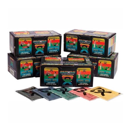 CanDo Low Powder Pre-Cut Exercise Band, 48L Strips, Box of 40, 5 Color Set