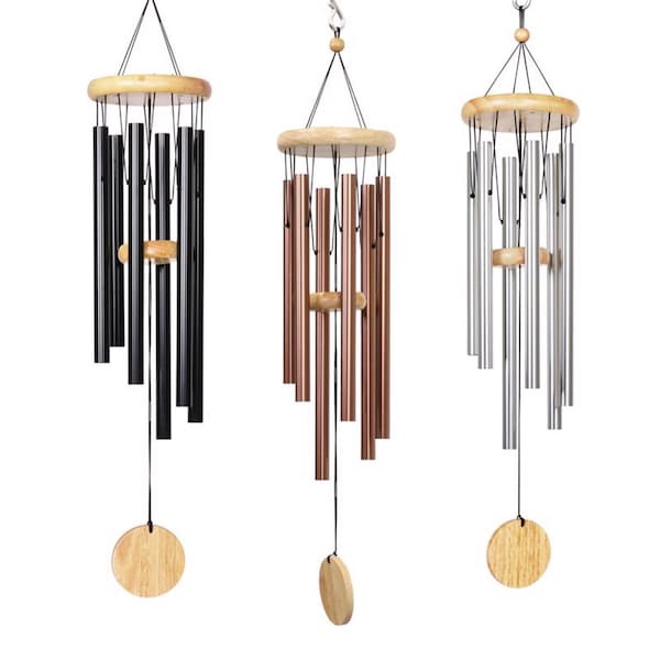 3pc 28 Inch Hand Tuned Metal Wind Chime w Natural Wood Top and Chime Charm Bronze Silver Black Assorted. Beautify your yard or walkways with Exharts charming outdoor Wind Chimes. These decorative lawn ornaments make a statement anywhere you place them.