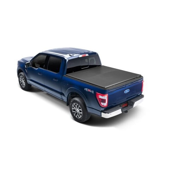 Soft Folding With Auto Latch And Secure Rotary Release, 2 Folds/ 3 Panels, Not Hinged In Front, Lockable via Tailgate Lock, Matte Black, Vinyl, Works Without Tool Boxes