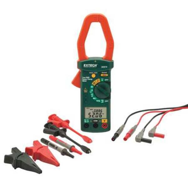 Clamp-On Power Meter, AC Current Measurement Resolution 10 mA, AC Voltage Measurement Resolution 0.1 mV, Basic AC Current Accuracy +/-2.00 Percent, Basic AC Voltage Accuracy +/-1.00 Percent, Basic DC Voltage Accuracy +/-1.00 Percent, Batteries Included Yes, Battery Size 9V, Battery Voltage 600V, Calibration Frequency 60 Hz, Capacitance Measurement Accuracy +/-1.50 Percent, Capacitance Measurement Resolution 1 nF, Counts 9,999, Crest Factor 1.42, DC Current Measurement Resolution 10 nA