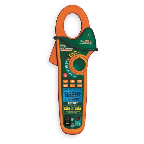 Digital Clamp Meter, Audible Continuity Yes, Safety Rating CAT III 600V, AC Response Calculation TRMS, Maximum AC Current Measurement 400 A, Maximum AC Voltage Measurement 600 V, Maximum DC Current Measurement 400 A, Maximum DC Voltage Measurement 600 V, Parameters Measured AC Current, AC Voltage, Capacitance, DC Current, DC Voltage, Diode, Duty Cycle, Frequency, Resistance, Temperature (IR), Temperature (K), Jaw Opening 1.25 in, Jaw Style Clamp On, Calibration Certificate Included No