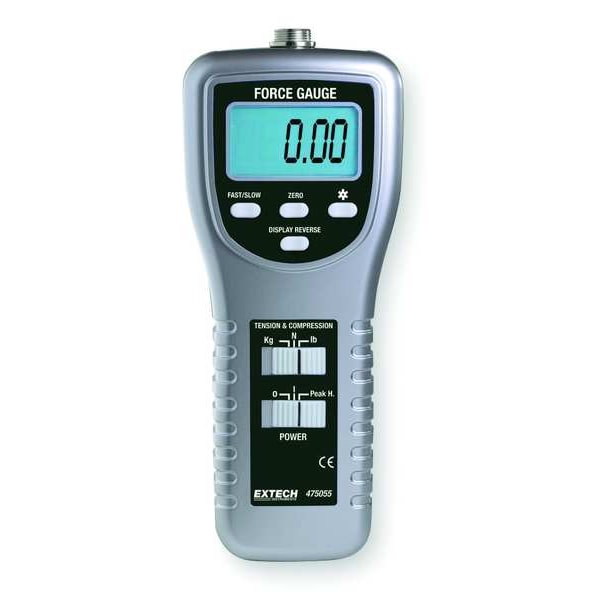 Digital Force Gauge, Maximum Force Measured 220 lbf, Force Resolution 0.05 Kg, 0.05 lb, 0.2 N, Force Accuracy +/-0.5 Percent of Reading, Measuring Units kg, lb, N, Display Type Digital, Includes Case, Tension and Compression Adaptors, Digital Display Screen Type LCD with Backlight, Auto Power Off Yes, Interface RS-232, Manufacturer Warranty Length 2 yr, Battery Voltage 1.5V, Number of Digits 5, Power Source Battery, Batteries Included Yes, Battery Size AA, Number of Batteries Required 6