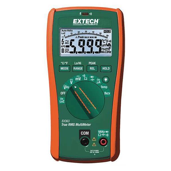 Digital Multimeter, Audible Continuity Yes, Basic AC Voltage Accuracy +/-1 Percent, Basic DC Voltage Accuracy +/-0.50 Percent, Data Hold Yes, Basic DC Current Accuracy +/-1 Percent, Instrument Safety Rating CAT IV 600V, Maximum AC Voltage Measurement 1,000 V, Maximum DC Voltage Measurement 1,000 V, Instrument Counts 6,000, Special Features 11 Functions, LoZ, NCV Detector, Peak Hold, UA Current, Maximum AC Current Measurement 600 uA, Calibration Certificate Included Yes