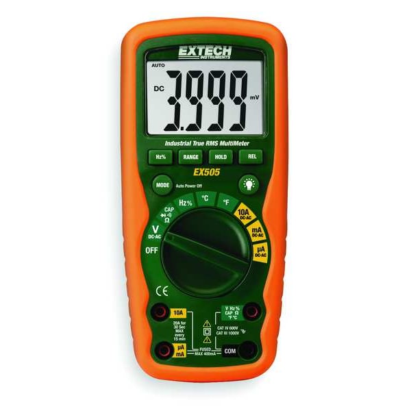 1000V Input Protection on All Functions, 10A Max Current, 4,000 Count Large Backlit LCD, AC/DC Voltage & Current, Resistance, Capacitance, Frequency, Temperature, Duty Cycle, Diode/Continuity, Complete with Double Molded Test Leads, Magnetic Hanging Strap, Type K Bead Wire Temp Probe, Carrying Case and 9V Battery, Data Hold, Relative, Auto Power Off, Double Molded Housing for Waterproof Protection, Dual Sensitivity Frequency Functions (Electrical/Electronic), True-RMS DMM with 11 Functions and 0.5% Basic Accuracy
