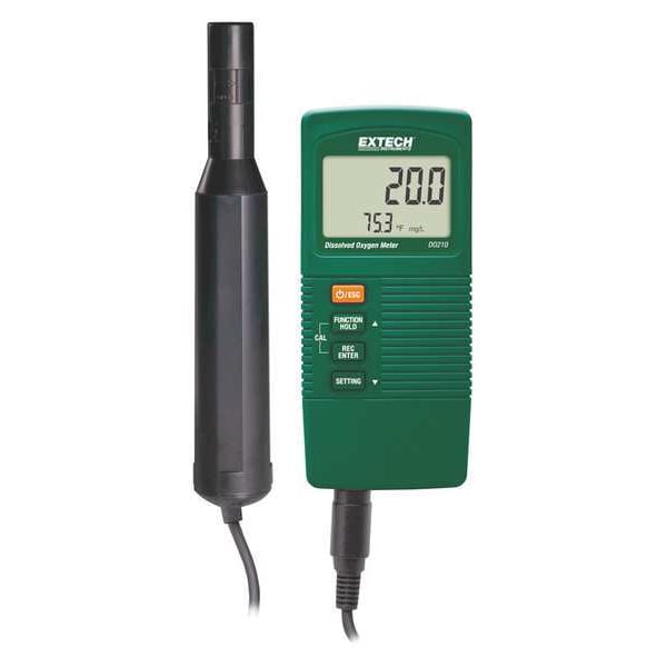 Handheld Dissolved Oxygen Meter, Dissolved Oxygen Range 0 to 20 mg/L, Oxygen Concentration 0 to 100 Percent, Waterproof No, Automatic Temperature Compensation Yes, Displayed Temperature Range 0 Degrees to 50 Degrees C, 32 Degrees to 122 Degrees F, Operating Temp. Range (F) 32 Degrees to 122 Degrees , Operating Temp. Range (C) 0 Degrees to 50 Degrees , Display Dual LCD, Auto Power Off Auto Power Off, Temperature Compensation Range 0 Degrees to 50 Degrees C, Calibration Fresh Air, Cable Length 4 m