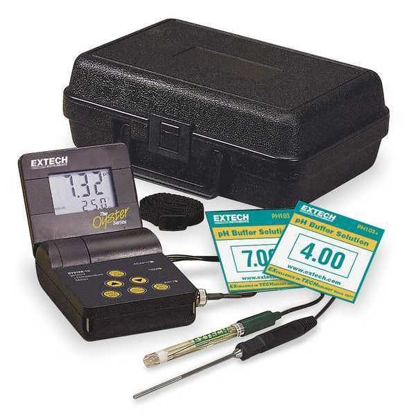 pH Meter Kit, pH Range 0.00 to 14.00, ORP Range -999 to 999mV, Temp. Range (F) 32.0 Degrees to 212.0 Degrees , Display LCD,Two Line, Auto Power Off Yes, When Cover is Closed, Temperature Compensation Range Manual and Automatic: 0-100 Degrees C, Calibration 5 Point, Includes Meter, Probe (pH and temp), 9V Battery, Instructions, Case, Manufacturers Warranty Length 1 Year