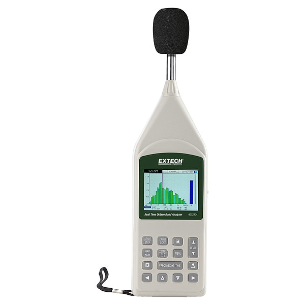 Sound Level Meter, Includes AC Adapter, Carrying Case, Microphone, MicroSD Card, Mini Screwdriver, USB Cable, Windscreen, Digital Display Screen Type LCD with Backlight, Frequency Weighting A, C, Z, Maximum Frequency Measurement 10 kHz, Maximum Sound Level Measurement 130 dB, Minimum Frequency Measurement 25 Hz, Minimum Sound Level Measurement 20 dB, Number of Records Stored 30,000,000, Sound Level Measurement Accuracy +/-1 dB, Sound Level Measurement Resolution 1 dB, Interface SD Card, USB