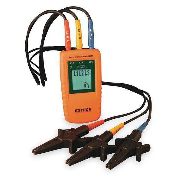 Phase Sequence Tester, CAT Safety Rating CAT III 600V, Display Screen Type LCD, Display Type Digital, For Voltage Range 40 to 600V AC, Includes (3) Test Leads with Large Color-Coded Alligator Clips, Pouch Case, Maximum Frequency 400 Hz, Minimum Frequency 15 Hz, Testing Functions Phase Rotation, Alert Type Not Applicable, Battery Chemistry Not Applicable, Battery Size Not Applicable, Circuit Connection Type Alligator Clips, Data Logger No, Display Size 1.9 in