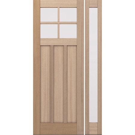 G7504, 51.5" x 98" ( 36" Door + 12" Side) Right Hand, Mahogany SDL 4 Lite, 3/4 Lite Exterior Door