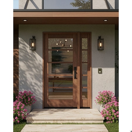 G10502, 65.25" x 98" ( 36" Door + 2x12" Side) Right Hand, Mahogany SDL 5 Lite Exterior Door