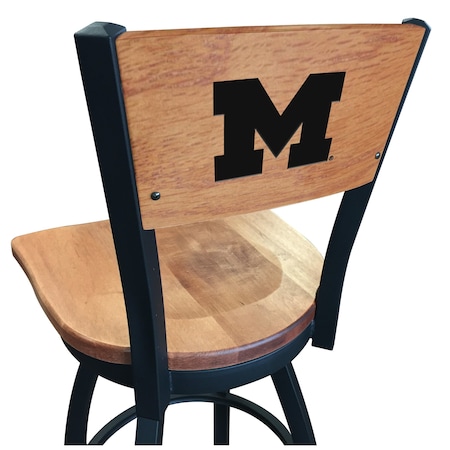 36" Blk Wrinkle Michigan Swivel Bar Stool, Laser Engraved Back