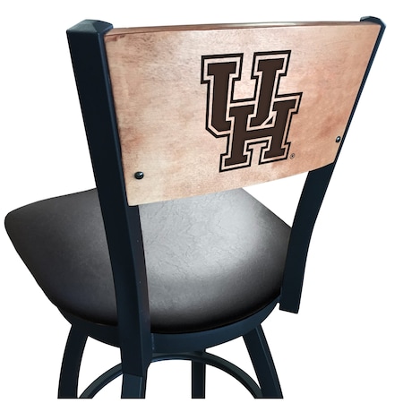 36" Blk Wrinkle Houston Swivel Bar Stool, Laser Engraved Back