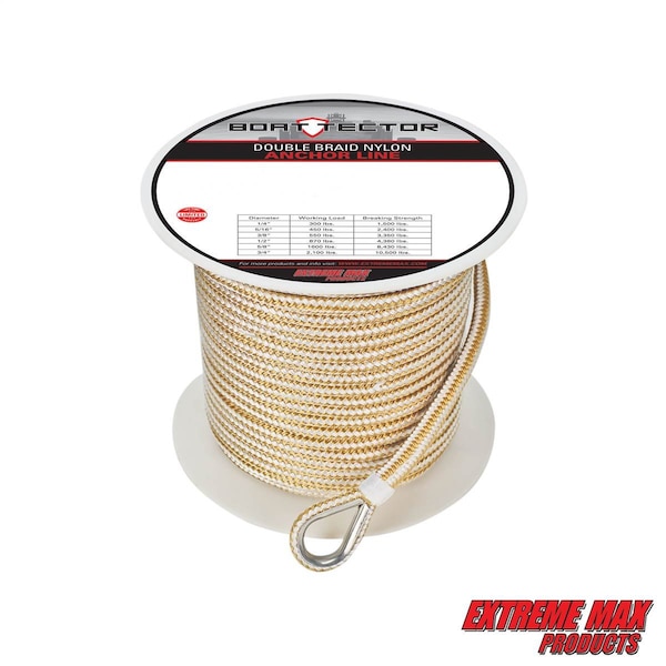 Extreme Max 3006.2252 BoatTector Premium Double Braid Nylon Anchor Line w Thimble-3/8" x 250' &Gold