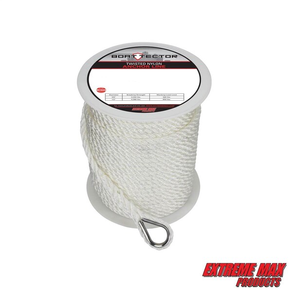 Extreme Max 3006.2297 BoatTector Twisted Nylon Anchor Line with Thimble - 3/8" x 200', White