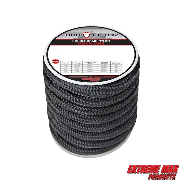 Extreme Max 3006.2309 BoatTector Double Braid Nylon Dock Line - 3/4" x 30', Black