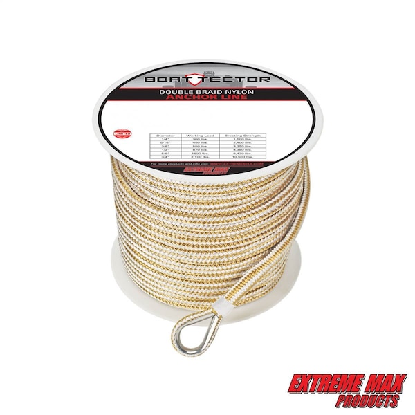 Extreme Max 3006.2347 BoatTector Premium Double Braid Nylon Anchor Line w Thimble-3/8" x 600' &Gold