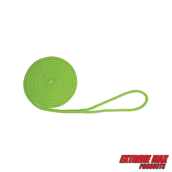 Extreme Max 3006.2445 BoatTector Double Braid Nylon Dock Line - 1/2" x 15', Neon Green