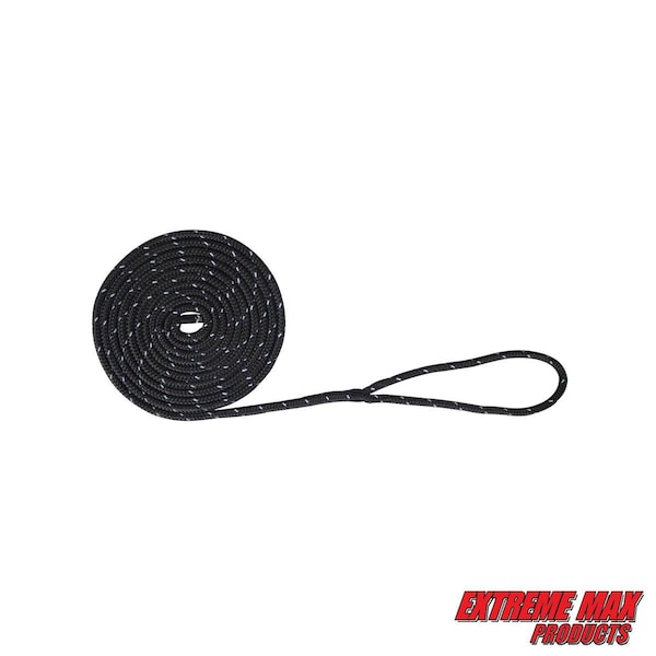 Extreme Max 3006.2469 BoatTector Double Braid Nylon Dock Line-3/8" x 20', Black w Reflective Tracer