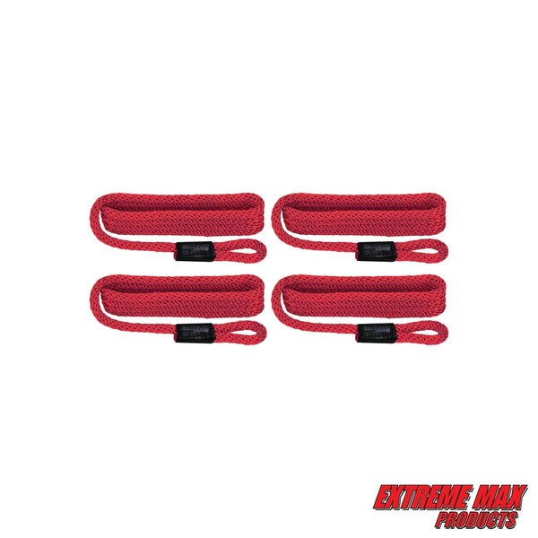 Extreme Max 3006.2989 BoatTector Solid Braid MFP Dock Line Value 4-Pack - 3/8" x 15', Red