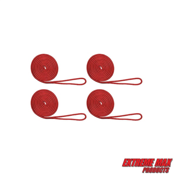 Extreme Max 3006.3008 BoatTector Double Braid Nylon Dock Line Value 4-Pack - 3/8" x 15', Red