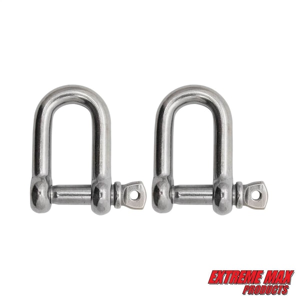 Extreme Max 3006.8246.2 BoatTector Stainless Steel D Shackle - 1/2", 2-Pack