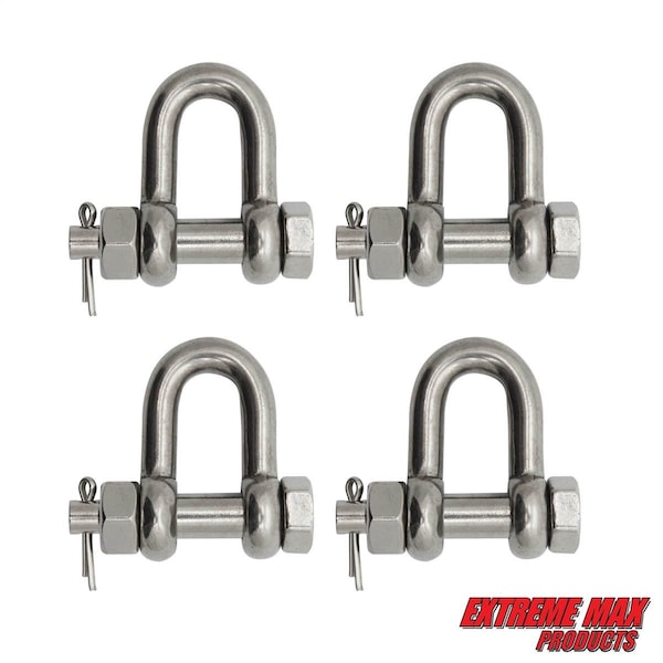 Extreme Max 3006.8339.4 BoatTector Stainless Steel Bolt-Type Chain Shackle - 1/4", 4-Pack