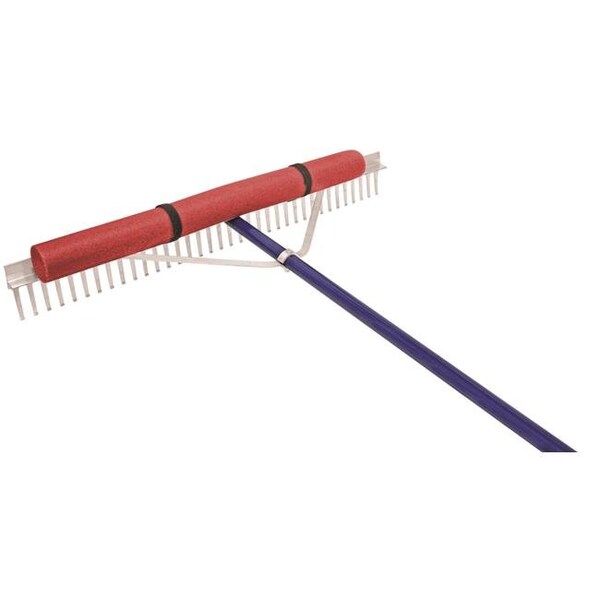 This two-function rake takes care of both of these needs. Assembled for the water, the 36" floating head brushes through the surface of your swim area, guided by a 50’ rope to reach even the farthest areas of your water kingdom, gathering weeds and algae and leaving you with a crisp, clean surface area. Once out of the water, simply adjust the handle, remove the rope and float to find yourself holding a professional-grade landscaping rake, perfect for smoothing out your sand volleyball court or flattening those week-old sandcastles.