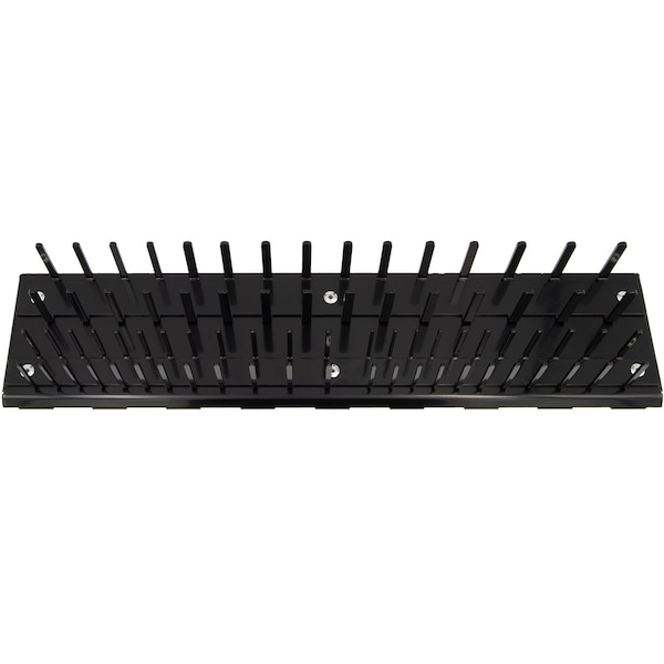 Extreme Tools ACSBK 76 Pin Socket Holder Accessory hangs on the edge of our RX and DX Series Extreme Power Workstation Hutches as well over the top rails of most roller cabinets and tool carts. Our Socket Holder Accessory keeps your sockets organized and close by making it easy to access them when you are working. With pins for your most commonly used 1⁄4” and 3/8” deep and shallow sockets, you can readily keep track of them. We used heavy-duty, powder coated steel so that your socket holder will stand years of daily use.