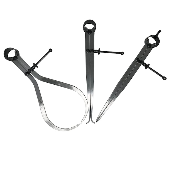3 Piece Set 8 Spring Divider A divider caliper can be used to measure circles or arcs They can also be used as mapping tools to measure the distance between two points, 8 Inside Caliper This measuring caliper can be used to measure or gauge the internal size or opening of an object That measurement can then be transferred to a ruler, 8 Outside Caliper This transfer tool can be used to measure the thickness and exterior diameter of an object They are able to measure large distances such as a pipe or other circular materials