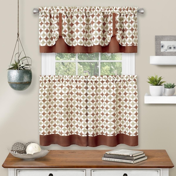 Callie Window Curtain Tier Pair & Valance Set - 58 x 24 in. - Spice & Tan (Discontinued)