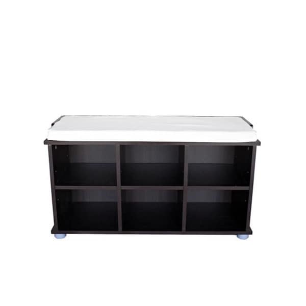 Proman Product Kendal 6-Cell Espresso, White Cushion Shoe Bench