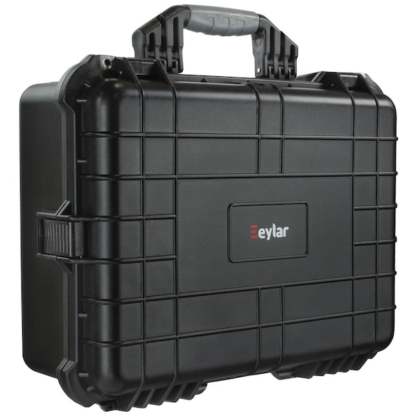 This large protective hard case gives extra protection with one customizable pull & pluck cubed foam layer, two solid foam layers and one layer of egg-crate foam padding and makes for safer traveling with its pressure equalizing knob. The hard case comes in a convenient size of 20in making it easy to store inside a backpack or luggage and makes it great for storing cameras, electronics and more.