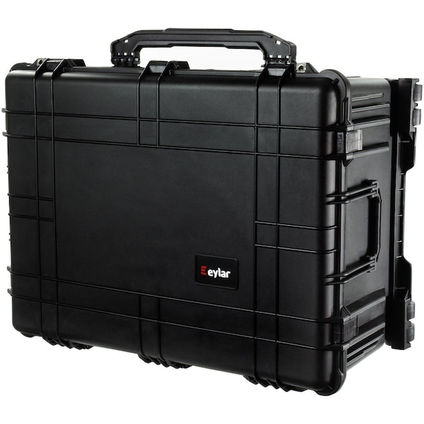 The Eylar 31.1 inch protective trolley box combines heavy duty protection with the ease of transportation. A tough outer shell allows for a shock resistance while a strong seal creates water protection. Inside, there is compartmentalized foam to keep belongings safe and organized. A lockable handle pulls out to carry the box with sturdy wheels. Air pressure equalizer knob to compensate for altitude while traveling. Clamps on the top to shut the box along with stackable grooves. Excellent for traveling with heavy and sensitive items.