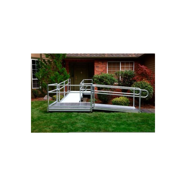 Pathway Wheelchair Ramp Kit, L Shaped, Aluminum, 5' Turn Platform, 20'L x 36inW