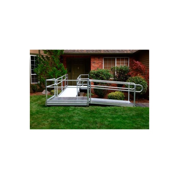 Pathway Wheelchair Ramp Kit, L Shaped, Aluminum, 5' Turn Platform, 22'L x 36inW