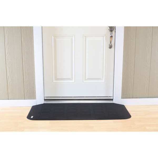Door Ramp, For Use With Thresholds, Matte Finish, Black, Material Rubber, Width 17 3/4 in, Length 45 3/4 in, Height 1 1/2 in, Surface Type Smooth