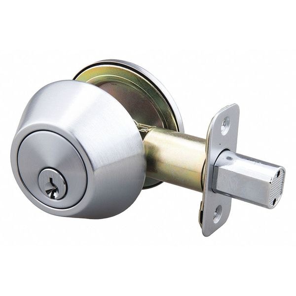 Deadbolt Lock, Cylindrical, Multi-Family, Lockset Grade 3, Lockset Finish Satin Chrome, Keyway Type KW1, Key Type Keyed Different, ADA Compliant No, Lockset Fire Rating Not Rated, Backset 2 3/8 in, Ligature Resistant No, Cylinder Single, Faceplate Dimensions 1 in x 2-1/4 in, For Door Thickness 1 3/4 in, For Use With Keyed Door, Includes (2) Keys, Strike Plate, Material Steel, Number of Keys 2, Pins 5, Security Type Light-Duty, Strike Round Corner, Strike Dim. 1 in x 2-1/4 in, Throw Length 1 in