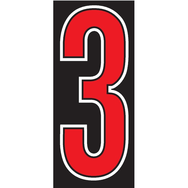 7 1/2" Red, Black & White Adhesive Windshield Numbers: 3 Pk12