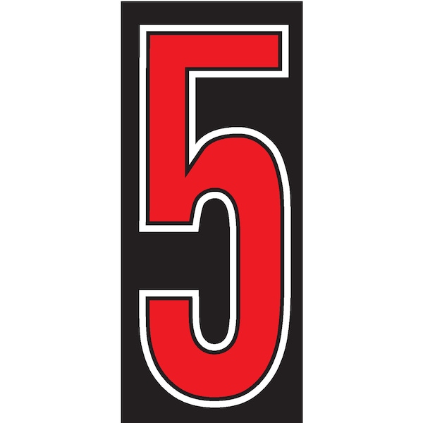 7 1/2" Red, Black & White Adhesive Windshield Numbers: 5 Pk12
