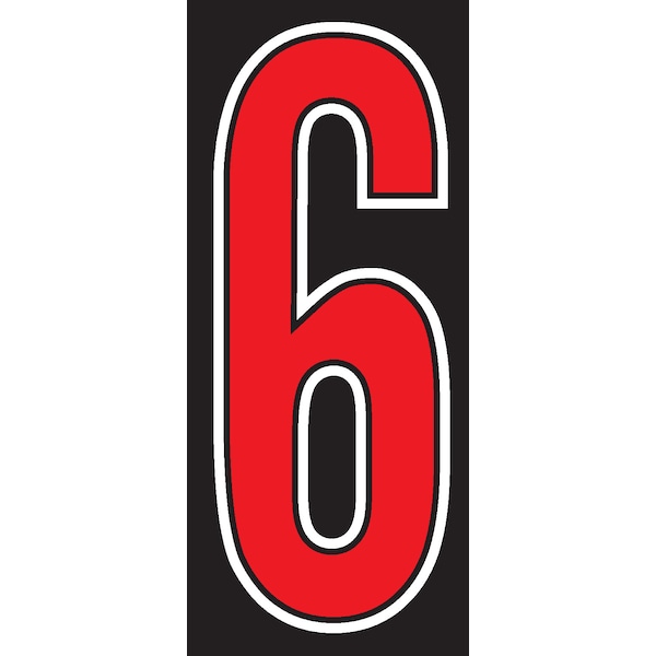 7 1/2" Red, Black & White Adhesive Windshield Numbers: 6 Pk12