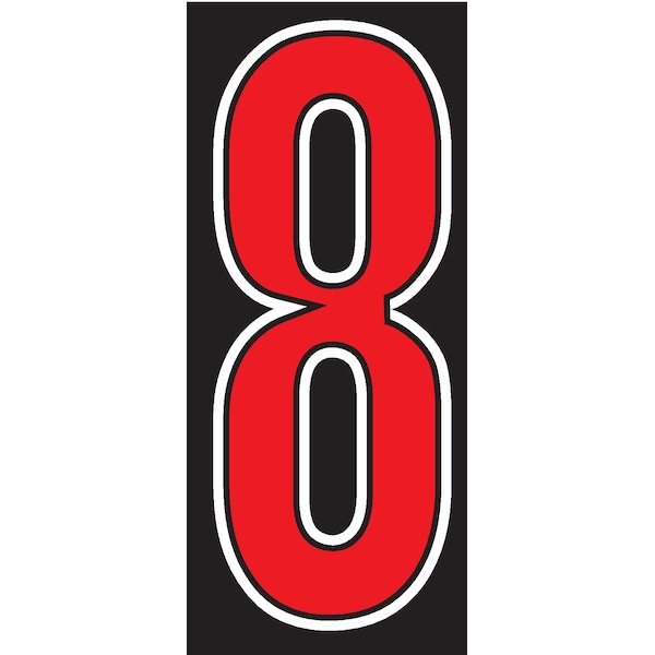 7 1/2" Red, Black & White Adhesive Windshield Numbers: 8 Pk12