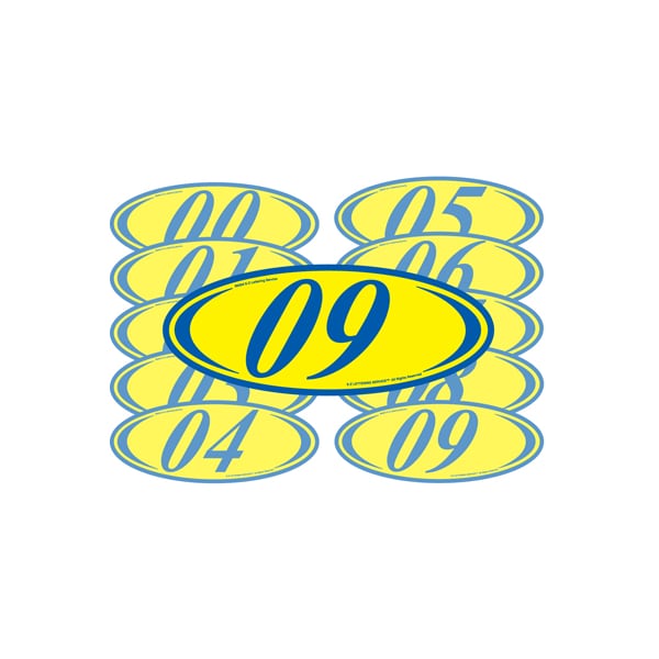 Blue & Yellow Two Digit Oval Year Model Signs: 21 Pk