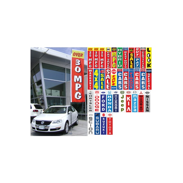 These large flags can be seen from down the block and read like a sign. Unique design allows this flag to "fly" even when there is no wind. Great for the front line or highlighting any vehicle. No more big, heavy poles to deal with or giant poles to store. Overal height is 13 feet 10 inches. Each Kit Includes: Flat Top Flag, 4 piece Pole with carry case and Ground Spike Spindle. Flag Info:Printed on one side only, each flag is 2 feet 2 1/2 inches wide x 9 feet 8 1/2 inches tall and has a sewn sleeve on the top and side that easily slips over the Flat Top Flag Pole. Pole Info:Made from special state-of-the-art lightweight material, the Pole is easy to move but guaranteed not to break. When assembled the Pole is 13 ft. 10 inches tall. The design of this pole allows for quick and easy assembly of the 4 pieces. Includes a convenient 5 ft. long black storage/carry case with room to store a Flat Top Flag, Spindle and the 4-pieces of the pole. Ground Spike Spindle Info: This spindle is specially designed to allow the use of a Flat Top Pole on any grass or dirt surface. Made of heavy duty steel, this spindle has a 14 1/4 inch long spike that securly allows a Flat Top Pole to pivot from the wind.