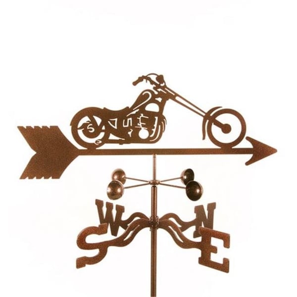 Move your garage know-how outside with this chopper motorcycle weathervane -Made of 14-gauge steel, this weathervane adds a touch of beauty in any home or garden setting. Easily installs in less than 1 minute. Intricate laser cut design with 3 protective coatings baked on to prevent rust or fading for years. Complete set includes laser cut top, windcups that have sealed ball bearings to gently turn in any breeze, an EWNS directional that tells the direction the wind is coming from and your choice of mount.