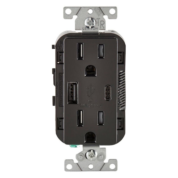 15 amp 125 V Black Outlet & USB Charger - Nema 5-15R